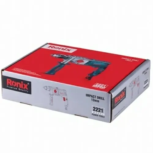 علاوه بر این، موتور دریل 2221 گیربکسی دو سرعته است که برای کار روی سطوح مختلف میتوان سرعت دریل را روی حالت اول (صفر تا 1200 دور در دقیقه) یا دوم (صفر تا 3200 دور در دقیقه) تنظیم نمود. این محصول دارای مکانیزم ضربهای (چکشی) بوده و در حالت چکشی بالغ بر 42000 ضربه در دقیقه تولید میکند. این مکانیزم به دستگاه برای نفوذ به سطوح متراکم کمک میکند. پس از موتور، سه نظام مورد توجهترین بخش هر دریل است. سه نظامهای با کیفیت به معنی طول عمر بیشتر دریل و کارآیی بهتر آن هستند. دریل 2221 رونیکس دارای سه نظام آچاری تمام فلزی است. سه نظام این دریل از فلز پرتراکم و باکیفیتی ساخته شده است که در برابر فشار ناشی از سوراخکاری روی بتن و سایر اجسام سخت مقاوم است و دچار آسیب نمیشود. این سه نظام با ظرفیت 13 میلیمتر، مته را به محکمترین حالت ممکن سرجای خود نگه داشته و با ثابت نگه داشتن مته از انحراف آن جلوگیری میکند در نتیجه تمام نیروی وارده از شفت به مته روی یک نقطه متمرکز میشود. در واقع به واسطه وجود این سه نظام سوراخکاری به دقیق ترین شکل ممکن انجام میگیرد. به علاوه اندازه و وزن متناسب 2221 آن را تبدیل به دریلی خوشدست کرده که از استفاده طولانی مدتش خسته نخواهید شد. دسته این محصول با TPR روکش شده و ضد تعریق است همین ویژگی از لغزش دریل در دست جلوگیری میکند و به کاربر برای داشتن تمرکز بیشتر کمک میکند.