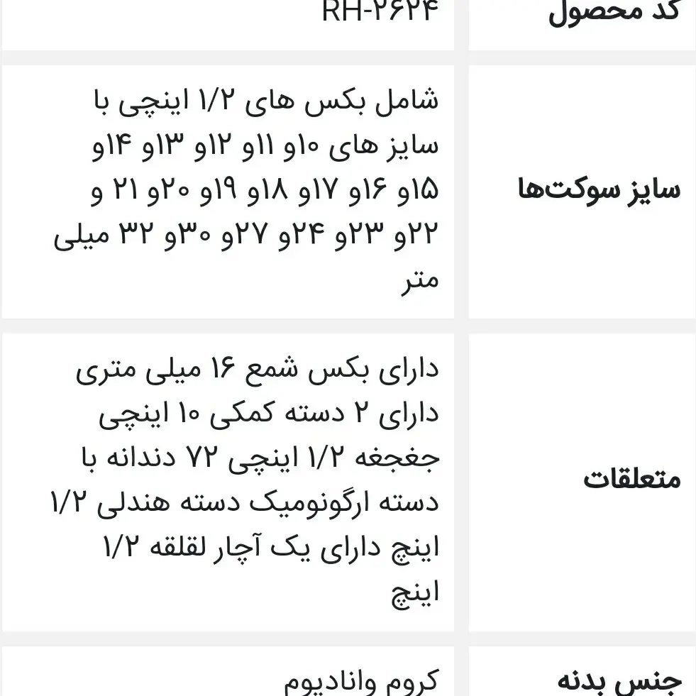- یک مجموعه کامل شامل اندازه های مختلف سر بکس به علاوه یک پیچ گوشتی و یک دسته جغجغه