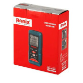 متر لیزری 50 متری رونیکس، با محدوده برد اندازه گیری از 0.05 تا 50 متر، دقت اندازه گیری 1.5± میلی متر و حداکثر تفکیک0.001 متر، امکان انجام عملکردهای کاربردی تکمیلی اندازه گیری از جمله محاسبه مساحت، محاسبه حجم و محاسبات فیثاغورثی را داراست. به علاوه، به خاطر داشتن قابلیت اندازه گیری متوالی و لحظه ای، می توان از آن برای محاسبات جابجایی نیز بهره برد. سرعت اندازه گیری این دستگاه 0.5 ثانیه است و دارای تایمر مخصوص زمان بندی انجام محاسبات می باشد.