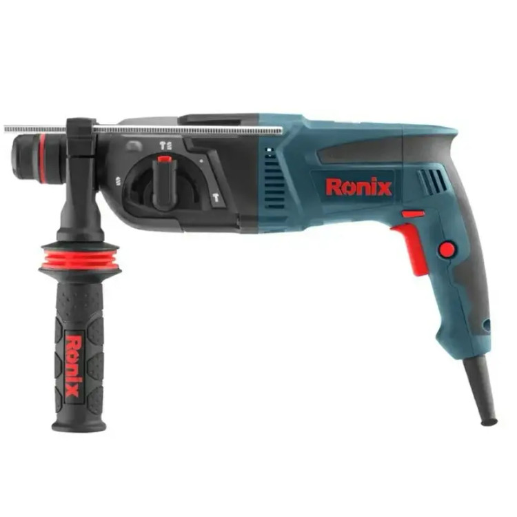 دریل بتنکن 2712 در سری تاپ لاین رونیکس، از ویژگیهای منحصربهفردی برخوردار است. بدنه صنعتی و مقاوم در کنار طراحی ارگونومیک این ابزار، موجب سهولت استفاده از آن میشود. همچنین، دستگاه به خاطر سیمپیچ و کلکتور مسی با خلوص بالای مس و کاملا لاکگیری شده، با توان حداکثری کار میکند. افزونبراین، برای افزایش کیفیت انتقال حرارت، پوسته فلنج از جنس آلیاژ آلومینیوم تقویتشده ساخته شده است. در این دستگاه، دندههای سختکاریشده استهلاک را کاهش داده و اورینگ و پکینگ باکیفیت از جنس وایتون، موجب افزایش طول عمر این دستگاه میشوند. دریل بتنکن 26 میلیمتری 720 وات تاپ لاین رونیکس مدل 2712، مزایای بیشمار دیگری از جمله مخزن ابزارگیر از جنس آلیاژ فولاد سختکاریشده، پوسته منیزیمی گیربکس، دسته جانبی ضد لرزش و ... را به کاربران ارائه میدهد. در بخش توضیحات محصول، بیشتر با این بتنکن تاپ لاین رونیکس آشنا شوید. دریل بتنکن 2712 تاپ لاین رونیکس، از لحاظ سرعت سوراخکاری، قدرت تخریب و طراحی ارگونومیک قابل مقایسه با سوپربرندهای جهانی است. این محصول امتحان خود را در آزمونهای مختلف پس داده تا تجربه لذتبخش کیفیت، دقت و سرعت کار حرفهای با ابزار را در اختیار کاربران خود قرار دهد! دریل بتنکن 2712 تاپ لاین رونیکس: تلفیق قدرت و کیفیت در این بخش، ویژگیهای این ابزار حرفهای کوچک و قدرتمند رونیکس با جزئیات بیشتری بررسی میشود. موتور: موتور قدرتمند 720 وات با قابلیت تنظیم برای انجام 4 عملکرد مجزای سواخکاری، سوراخکاری چکشی، خلاصکن و تخریب؛ ولتاژ 240-220 ولت؛ فرکانس 60-50 هرتز؛ سرعت در حالت آزاد در محدوده 1200-0 دور در دقیقه گیربکس: مجهز به گیربکس صنعتی با وزن متناسب و از جنس منیزیم دایکاستشده به منظور حداقل اتلاف حرارتی و افزایش عملکرد دستگاه مکانیزم ضربه: مجموعه مکانیزم ضربه، شامل شاتون، پیستون، سیلندر و ضربهزن است. حرکت پیستون داخل سیلندر با ظرفیت بالا، توان ضربه 3 ژول و 4500-0 ضربه در دقیقه را در حالت آزاد ایجاد میکند. مجموعه ابزارگیر: ابزارگیر چهارشیار (SDS-PLUS) 26 میلیمتری؛ ظرفیت سوراخکاری در فلز 13 میلیمتر و در بتن 26 میلیمتر؛ دارای سیستم منحصربهفرد در قسمت محور چرخشی قلمگیر که موجب بهحداکثررسیدن بازدهی دستگاه در حالتهای مختلف میشود؛ مخزن ابزارگیر از جنس آلیاژ فولاد سختکاریشده و بدون خوردگی و آسیبدیدگی؛ درپوش ابزارگیر از جنس فلزی و مقاوم در کاربردهای صنعتی بدنه: دارای طراحی ارگونومیک، جمع و جور و 3.3 کیلوگرمی جهت کاربرد آسان در طول استفادههای مداوم؛ محفظه از جنس آلومینیومی دایکاستشده، سبکوزن، قدرتمند و دارای سیستم ضد لرزش به منظور سهولت کاربری؛ مجهز به دسته جانبی 360 درجه با طراحی رونیکس و روکش لاستیکی ضد لرزش به منظور کاهش خستگی کاربر سیستم کلاچ ایمنی: سیستمی پیشرفته جهت افزایش ایمنی و محافظت بیشتر از دست کاربر در هنگام استفاده از بتنکن روی سطوح بسیار متراکم کلید: کلیدهای ضد غبار متناسب با کاربردهای صنعتی و مداوم که موجب کاهش نفوذ گرد و غبار ناشی از عملیات سوراخکاری و تخریب به داخل دستگاه میشوند؛ دارای دکمه قفلکن؛ کلید خاموش\u002Fروشن؛ سوئیچ انتخاب 4 حالت سواخکاری، سوراخکاری چکشی، خلاصکن و تخریب؛ اهرم چپگرد\u002Fراستگرد؛ دیمر به منظور تنظیم سرعت با توجه به فعالیتهای مختلف طراحی تخم مرغی محافظ کابل: عدم قطعی کابل از محل اتصال به بدنه به خاطر طراحی منحصربهفرد ball and socket یا حالت تخم مرغی در قسمت محافظ کابل؛ افزایش قدرت مانور در زوایای مختلف. سیستم روانکاری: دارای سیستم روانکاری ویژه که کارایی بالاتر و دوام بیشتر بتنکن را تضمین میکند. سایر مشخصات ابزار: ارائهشده در کیف BMC ضد ضربه همراه با میلهی تنظیم عمق؛ دستهی جانبی؛ ظرف گریس؛ سه مته SDS plus در اندازههای 8، 10 و 12 میلیمتر؛ یک عدد قلم نوک پهن و یک عدد قلم نوک تیز؛ دستمال تنظیف بیشتر بخوانید ویژگی ها ویژگیها: - مجهز به موتور قدرتمند 720 واتی با قابلیت تنظیم برای اجرای 4 عملکرد مجزا -محفظه آلومینیومی دایکاست، وزن سبک و ب